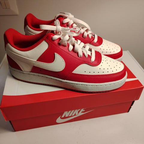 Nike tennarit, koko 40. Väritys valko-kulta-musta, mustat nauhat ja musta pohja. Päällinen nahkaa ja/tai synteettistä materiaalia, kumipohja. Korkeavartinen malli, joka sopii arkikäyttöön ja vapaa-aikaan. Vain nouto Kuopiosta.