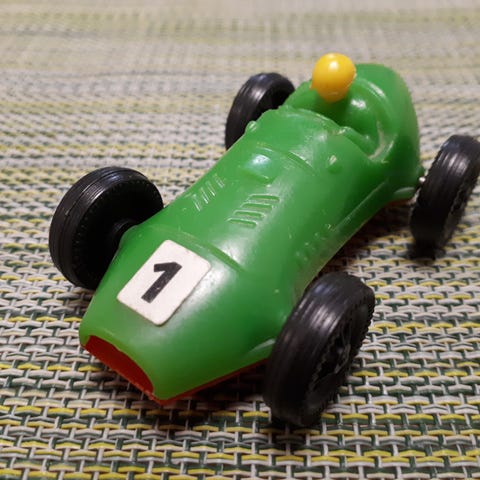 Neppis-auto (keltainen/vihreä-vihreä-keltainen). Made in Finland.