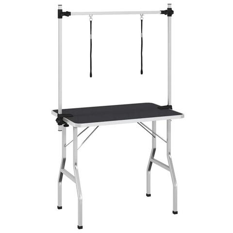 Tämä hoitopöytä on täydellinen kotiin tai reissuun, koiranäyttelyihin jne. Siinä on liukumaton pöytälevy ja jauhemaalattu rautarunko säädettävällä trimmausvarrella ja silmukalla.