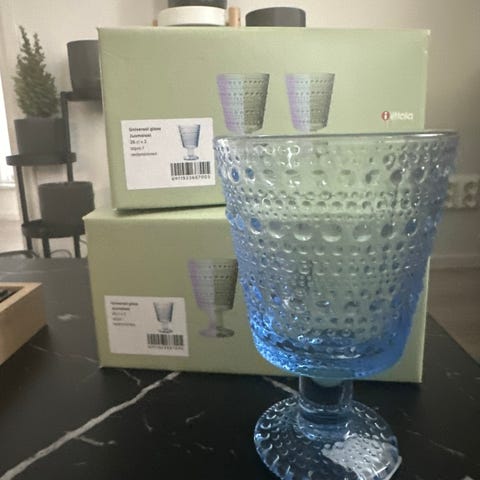 Iittalan Kastehelmi jalallinen lasi, väriltään kirkas ja koko 26 cl. Tarjoa!