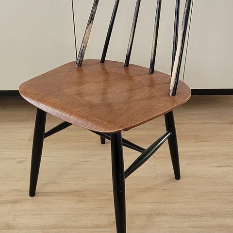 Yksi tuoli maalattu uusiksi joskus ja se natisee. Vaatii liimausta.