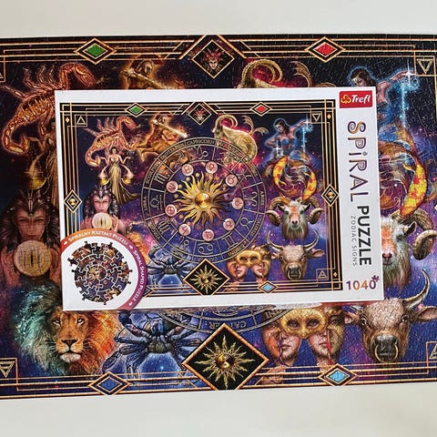 Trefi Puzzle 500 palan leijona-aiheinen palapeli. Kuvassa on lähikuva leijonasta. Mukana myös kirahvi-aiheinen säästölipas keramiikasta, jossa on talon muotoinen runko ja kolikkorako kannessa.