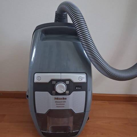 Pölynimurissa on käytön jälkiä, kuten naarmuja, mutta se on edelleen toimiva ja imuteho hyvä.