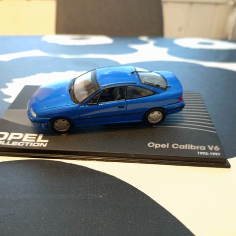 Itse tehty Opel pienoismalli, erinäisistä materiaaleista, kortonki, paperi, muovi etc. Auton pituus 40 cm. Tarkka jäljennös Opel Diplomat 2.8 vm 1975.