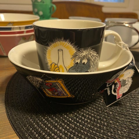 Muumimamma ja Pikku Myy Saippuakuplia -kulhot. Tarralliset ja virheettömät. 50e yhteensä. Kemissä, mutta kulkeutuu Ouluun.