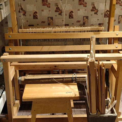 Kangaspuut 120 cm leveät, todella uuttavastaavat, niillä on kudottu vain yksi kangas. Osat kaikki mukana, niidet, lastat, pitempi ja lyhempi pingotin, pirta, narut ym. Puut ovat siistit ja vahvat, suorat ja näppärät kooltaan ja näöltään. Siitä hyvät edulliset kangaspuut. Mukaan saa vielä ison laatikollisen leikattua kudetta. Puut ovat purettu säilytyksen vuoksi. Vain nouto.