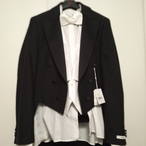 Ostan pikaisesti hyväkuntoisen frakin, koko 54 (185cm pitkä, noin 85kg), materiaalina pääosin villa.