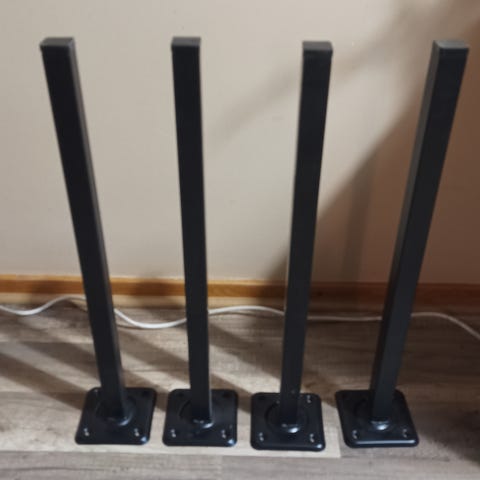 Metallijalat pöytään tai tuoliin. Löytyy kaksi paria, yksi pari 10 euroa. Nouto, Purokatu 5, Raisio.