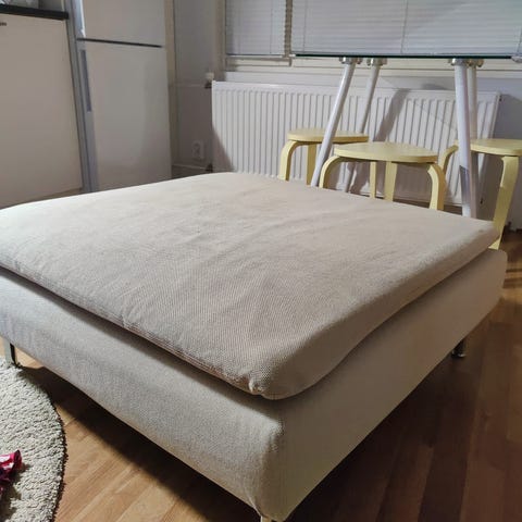 1-istuttava Söderhamn nojatuolin runko ILMAN päällisiä.Istuintyyny löytyy mutta EI muita irtotyynyjä.Eli kuvassa näkyvä kokonaisuus, metallijalat.HUOM.Ollut ennen meitä kissataloudessa ja rungossa edelleen muutama karva ja pari raapimaa, mutta uusilla päällisillä saa siistin.Peitetty itse vilteillä mutta allergian vuoksi luovutaan tästä.Halvalla pois nopeimmalle hakijalle!