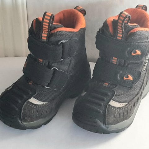 Viking lasten kengät, koko 22, vedenpitävät. Kengissä on tarrakiinnitys, joka helpottaa pukemista ja riisumista. Väri on musta tummilla harmailla yksityiskohdilla. Pohjassa on karkea kuviointi, joka antaa pitoa liukkaalla alustalla. Sisäosa on pehmustettu käyttömukavuuden lisäämiseksi. Soveltuvat sekä tytöille että pojille arkikäyttöön ja ulkoiluun.