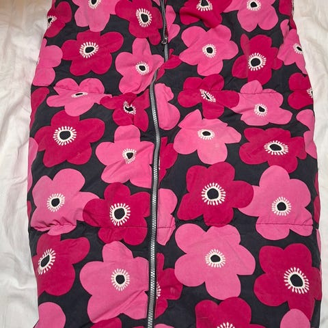 Vähän käytetty untuvapussi rattaisiin. Kansiosa vetoketjulla, jonka saa tarvittaessa kokonaan pois. Ulkokangas vettä hylkivää materiaalia ja sisäosa fleecekangasta. Koiratalous.
