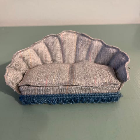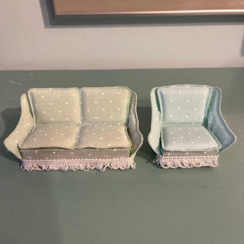 Lundby nukkekoti samettisohva 80-luvulta. Keräilijän kokoelmista.