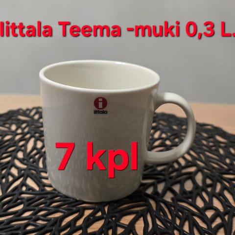 Iittala Teema mukit 7kpl valkoinen. Perusvärinen valkoinen posliinimuki, jossa on korva. Mukeja voi käyttää esimerkiksi kahville, teelle tai muille kuumille juomille. Sarja on uuninkestävä, mikronkestävä, pakastinkestävä ja konepesun kestävä, mikä näkyy pohjassa olevassa merkinnässä. Sopii arki- ja kattauskäyttöön.