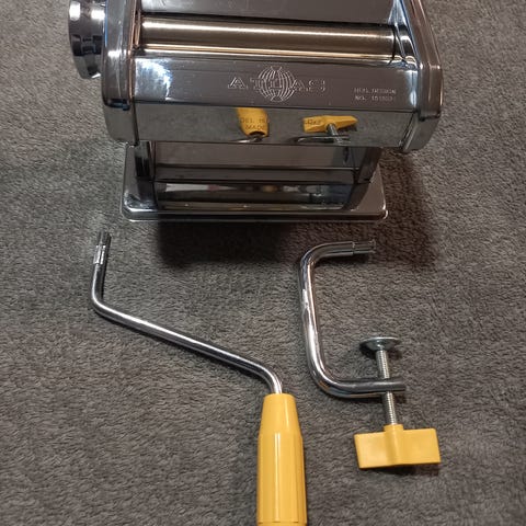Kone on klassikko, jolla teet helposti tuorepastaa kotona: tagliatellea, fettuccinea, lasagnelevyjä ja muita pastatyyppejä. Kone on jämäkkää metallia, ja mukana tulee käsikampi sekä kiinnityspidin pöydän reunaan. Kunto on hyvä – toimii moitteettomasti ja rullaa tasaisesti. Mukana alkuperäinen pakkaus.