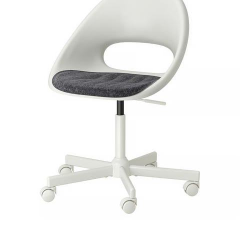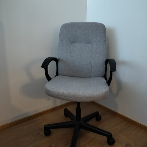 Ikean harmaa työtuoli skruvsta. Kangas pysynyt ehjänä ja hyvä kuntoisena käytössä. Istuin osan pesin koneessa ja sisusta ei asettunut niin nätisti kuin ennen. Ei kuitenkaan vaikuta käyttöön. Ovh 129