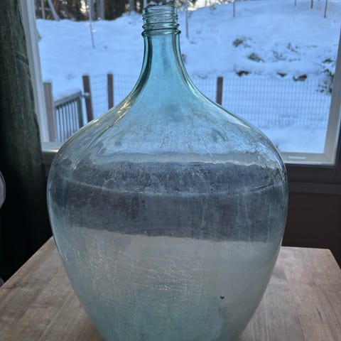 Iso lasinen koristepullo. Korkeus 28cm, halkaisija 20cm.