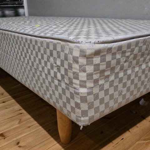 Toisen sängyn pohjasta yksi puu haljennut, saa fiksattua! Ei haittaa käyttöä.