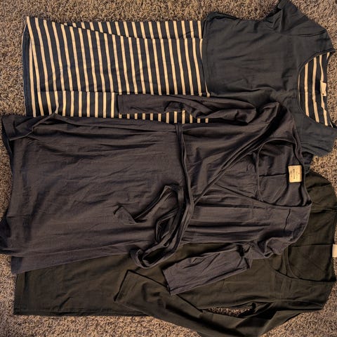Myydään imetysvaatteita H&M t-paita, H&M pitkähihainen raitapaita, Chelsea clark mekko/tunika.