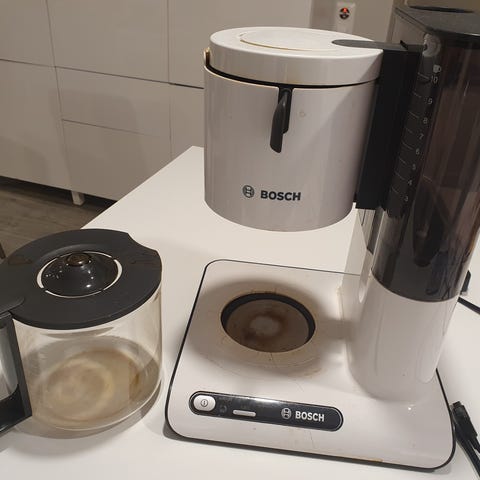 Annetaan vanha Moccamaster musta ja harmaa muovilaatikko, näkyy viimeisissä kuvissa. Kahvia pystyy hyvin keittämään, mutta muuten ulkoisesti huonossa kunnossa, pitää putsata kunnolla ja kansi teipattu kokoon. Virtanäppäin hieman löysällä, mutta toimii myös. Eli kahvia pystyy hyvin keittämään, mutta vaatii korjausta jos haluaa nämä asiat kuntoon. Nouto Liedon Loukinaisista. Annetaan kahvinkeitin ja laatikko samassa, ei erikseen.