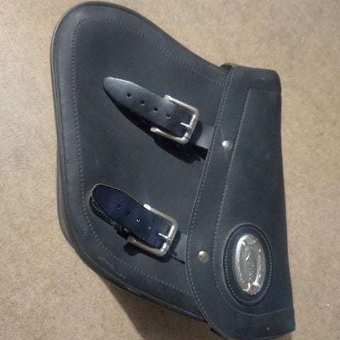 Kuvien mukainen HELD valmistama nahkainen sivulaukku rätkään tms. Jykevää nahkaa, tarra varmistus kannessa soljen lisäksi. Kova taustalevy, helppo kiinnittää ja pysyy ryhdissään. Leveys n.20 cm, korkeus n. 27 cm ja pituus pisimmillään n. 50 cm.