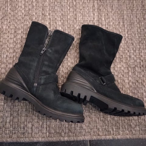 Myydään vähänkäytetyt tummansiniset Eccon lasten kengät. Lämmin vuori, erinomainen lesti ja tukeva tarrakiinnitys. Sisämitta n 19cm. Valkoiset pohjien reunat tummentuneet ja vuorissa hieman nyppyä, mutta muuten hyväkuntoiset kengät
