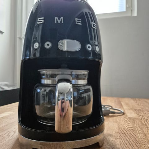 Smeg kahvinkeitin musta. Pöytämallinen suodatinkahvinkeitin, jossa yläosassa irrotettava suodatinosa. Kahvinkeitin toimi loistavasti, kunnes rikoin pannun. Itse keittimessä ei siis ole vikaa. Katsoin netistä että kahvipannuja saa ostettuna lisäosana jos Smegin keittimet kiinnostaa :)