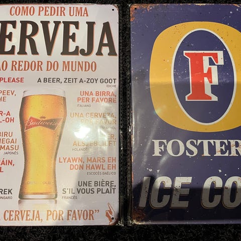 Retrot Carlsberg ja Budweiser peltiset mainostaulut yhteishintaan.