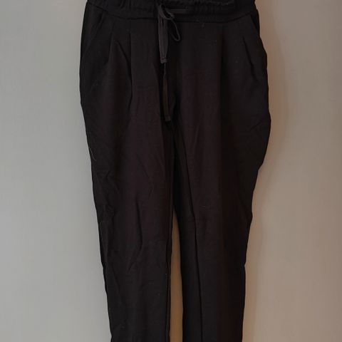 Matala vyötärö jossa vetoketjusepalus, piilonappi ja hakaset. Säädettävä jousto-osa.