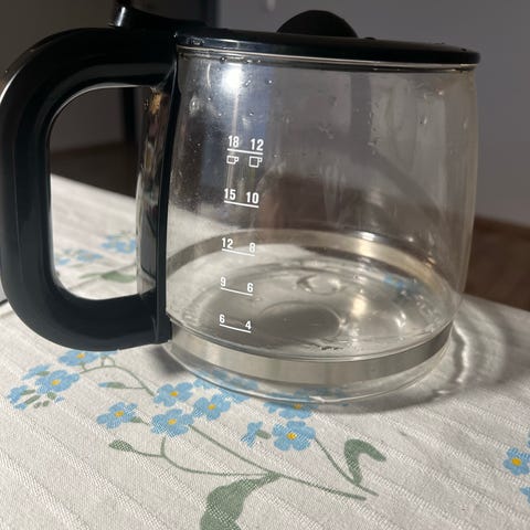 Kuvanmukaisen Kahvinkeittimen lasikannu olisi myytävänä Keitin ei enää toimi. Mutta lasikannu on. Siisti ja ehjä. Mahtuu 15 pientäkuppia ja 10 suurta. Lasikannu on siis myytävänä. Nouto.