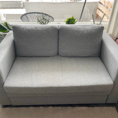 Harmaa Sotkasta ostettu vuodesohva.