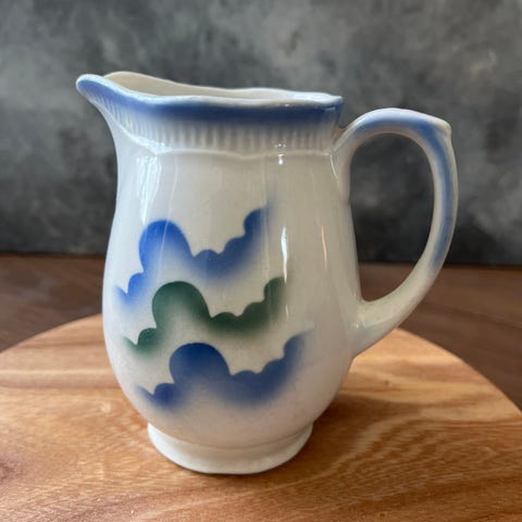 Vanha ehjä kullanvärinen kermakannu. Vetoisuus noin 1dl.