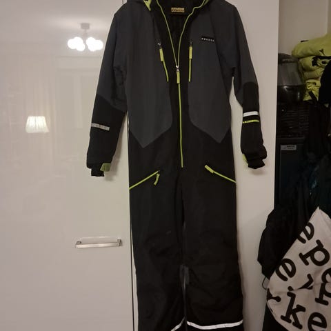160cm kokoinen lasten talvihaalari hupulla ja heijastimilla.