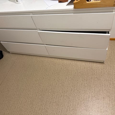 Annetaan autotallissa ollut lipasto. Pinnassa vähän likaa ja maalijälkiä. Laatikot siistit.