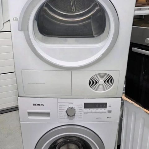 Toimiva ja siisti pesutorni. Paketti sisältää Siemens iQ300 -pesukoneen sekä Candy GOC 560B -kuivausrummun. Erinomainen ratkaisu tilaan, jossa laitteet halutaan päällekkäin.
