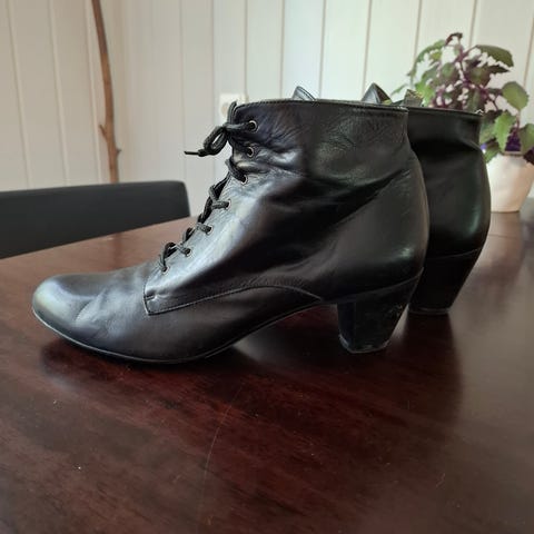 Siistikuntoiset, mustat korkkarit. Aitoa nahkaa. Huollettu asianmukaisesti, hyvässä kunnossa. Pieniä käytöstä tulleita kolhuja. Koron korkeus 5 cm. Kengissä kokomerkintä 5, vastaa kokoa 38-39.
