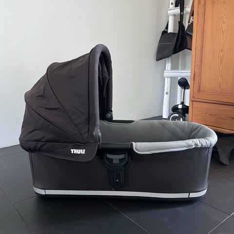 Todella siistissä kunnossa oleva Thulen vaunukoppa, jossa ei merkittäviä käytön jälkiä. Musta väri säilynyt hyvin mustana, eikä ole haalistunut auringossa. Patja myös siistissä kunnossa, ei tahroja. Suojapeitteessä pieni repeämä saumassa, ei vaikuttanut käyttöön millään tavalla (katso viimeinen kuva). Vaunukoppa kiinnitetään mukana tulevilla adaptereilla yhteensopiviin Thule-rattaisiin. Käy sekä yksilörattaisiin että sisarusrattaisiin. Mukana tulee myös kyseisen vaunukopan oma hyönteis- ja sadesuoja. Vaunukoppaa suojineen säilytetty aina kotona sisätiloissa. Vain nouto, en postita. Käteismaksu tai mobilepay. Meillä on savuton ja sisäilmaterve koirakoti.