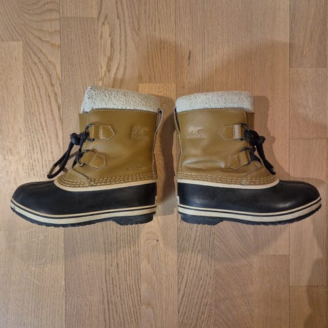 Myydään kuvan Sorelit. Malli Yoot Pac. Lämpimät lasten talvikengät, joissa huopavuori. Varsi nahkaa (väri mesquite) ja alaosa kumia, joka pitää jalat kuivina loskakeleilläkin. Vahva, eristetty ja kuvioitu kumipohja. Ostettu uutena ja käytetty yhdellä lapsella. Koko 30 / 17,5 cm.