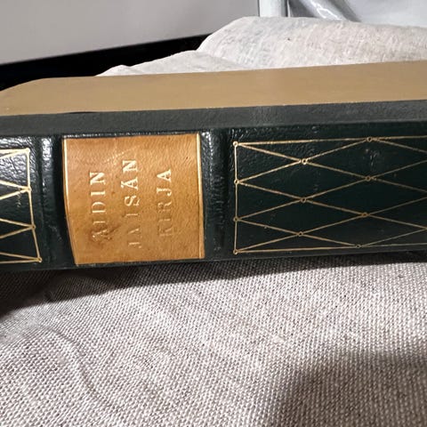 sidottu, nahkaselkä, kovakantinen (pientä käytön jälkeä kannessa)