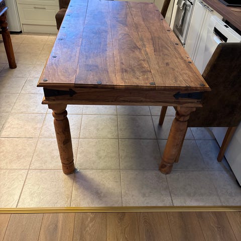 Erittäin tukevaa massiivi acaziaa näyttävillä takorauta koristeilla.