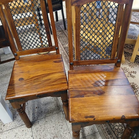 Tuolit toimitettu valmiiksi koottuina, selkänojat näyttävää takorautaa.