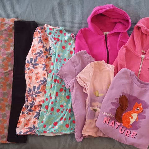 Paketissa mukana 7 housut, hame, liivi, kesämekko ja 4 paitaa. Vaatteet on käytettyjä. Saattaa vielä kaapista löytyy lisää vaatetta samaan pakettiin. Nouto multimäestä.