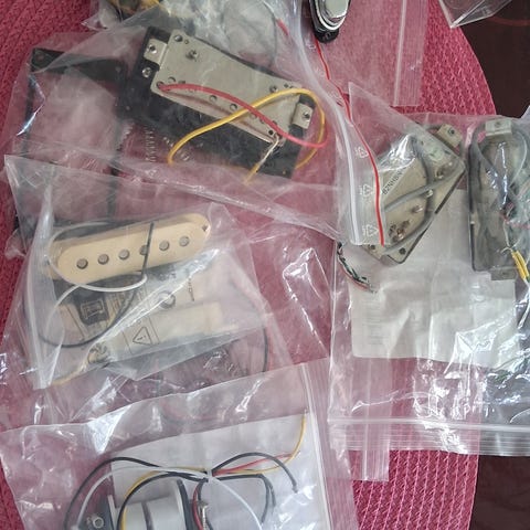 Squier humbucker-mikrofoni sähkökitaralle. Kaksikelainen humbucker, jossa valkoinen kelarakenne ja kehys. Mikrofonissa on nelijohdinkaapeli monipuolisia kytkentöjä varten. kuten mikin puolitus. rinnankytkentä tai vastavaihekytkentä mm. Sopii asennettavaksi sähkökitaroihin humbucker-kokoiseen koloon. Takapuolella merkintä noin 7,7 kΩ vastusarvosta. Piuhaa on riittävästi vaikka mitä kytkentöjä varten.