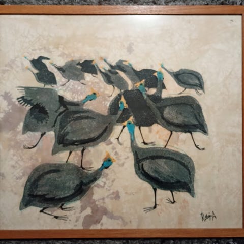 LARGE FRAMED CHINESE SILK PICTURE CRANES UNDER TREE, MEASURES 32CM W X 70CM L