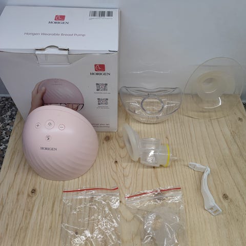 Horigen Easemore E4 rintapumppu, kannettava ja vaatteiden alle sijoitettava malli. Pakkaukseen kuuluu kaksi pumppuyksikköä, useita erikokoisia rintasuppiloita ja silikoniosia, maidonkeräysastiat, latausjohto sekä säilytyskotelo. Rintapumppu on suunniteltu kädet vapaaksi -käyttöön, jolloin pumppaus onnistuu esimerkiksi arkiaskareiden tai vauvan hoidon ohessa. Sopii rintamaidon pumppaamiseen kotona tai liikkeellä ollessa.