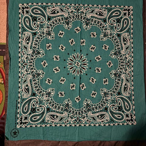 Hav-a-hank Bandanahuivi. Pieni tahra löytyy, en ole yrittänyt tahranpoistoa. Hajusteeton, eläimetön ja savuton talous.