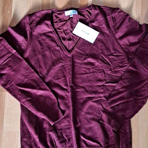 Pierre Robert Jenny Skavlan -malliston naisten neulepaita. Koko S. Väri musta. Materiaali pääosin viskoosia (lapun mukaan sekoite, jossa 55 % villaa ja 45 % Tenceliä). Pitkät hihat ja pyöreä pääntie. Sopii käytettäväksi arjessa esimerkiksi alus- tai välikerrastona tai ohuena neulepaitana.