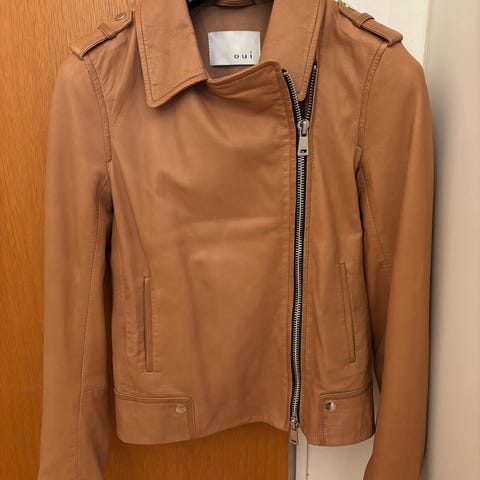 Cristelle & Co nahkatakki, koko 34. Ruskea naisten takki, jossa vino etuvetoketju ja leveä kaulus. Päällinen on nahkaa ja sisäpuolella pehmeä vuori. Hihoissa resorit.