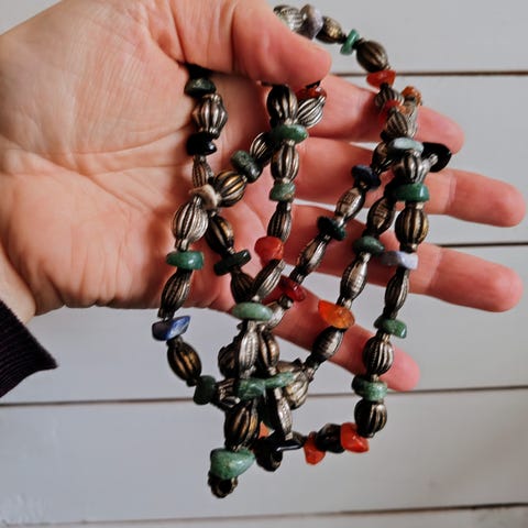 Tyyli: Statement-kaulakoru, choker-tyyppinen, heimotyylinen (tribal).