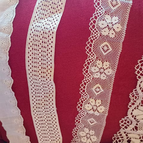Sekalainen erä pitsinauhoja ja virkattuja pitsejä. Mukana eri levyisiä ja pituisia nauhoja sekä paloja, pääosin vaaleita sävyjä, joukossa myös muutamia värillisiä pitsejä. Sopivat esimerkiksi käsitöihin, askarteluun, vaatteiden ja kodintekstiilien koristeluun tai muuhun ompelu- ja sisustusprojektiin.