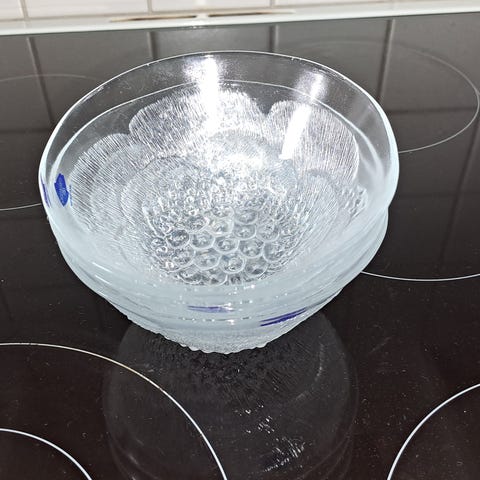 4 kpl Pioni Oiva Toikka Nuutajärvi jälkiruoka kippoja joiden halkaisija on 12,5 cm, korkeus 5 cm.